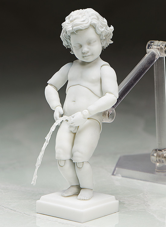 「figma 天使像」和前幾作不同,它並非是一個真實存在的藝術品,「天使像」是西洋雕刻藝術中常見的主題,從外觀形象來看,有著一對翅膀,手持弓箭,可能來自於羅馬神話中的小愛神,愛神、美神維納斯之子 —「邱比特」。另一方面,「figma 天使像」也融入了比利時首都布魯塞爾的市標「尿尿小童」的元素,配合特殊零件就能重現布魯塞爾市中心,挺立於噴水池上方的「尿尿小童」。
